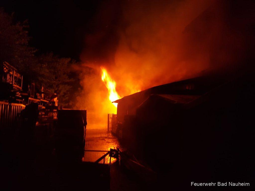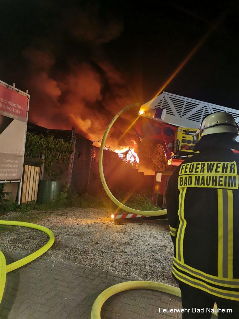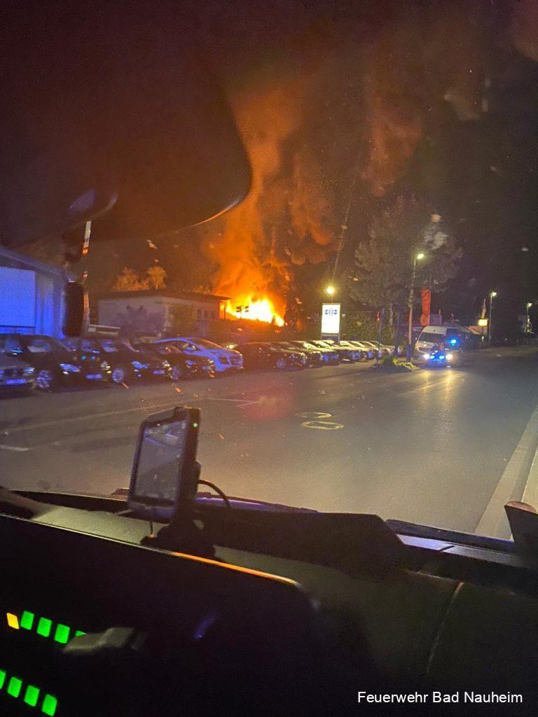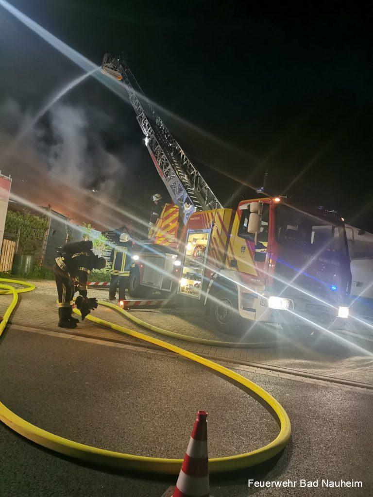 Wie sich ein kleines gemeldetes Feuer zu einem Großeinsatz entwickeln konnte, musste die Feuerwehr der Stadt Bad Nauheim in der Nacht von Freitag auf Samstag erleben. Um kurz vor 2:00 Uhr in der Nacht zum Samstag wurde die Abteilung Kernstadt zu einem Feuer in die Straße „Am Taubenbaum“ alarmiert, der aufgrund der Informationen bei der Entgegennahme des Notrufes als Kleinbrand eingestuft wurde. Aufgrund dessen wurde auch nur ein kleiner Teil der Einsatzkräfte zur Feuerwache in der Schwalheimer Straße gerufen.