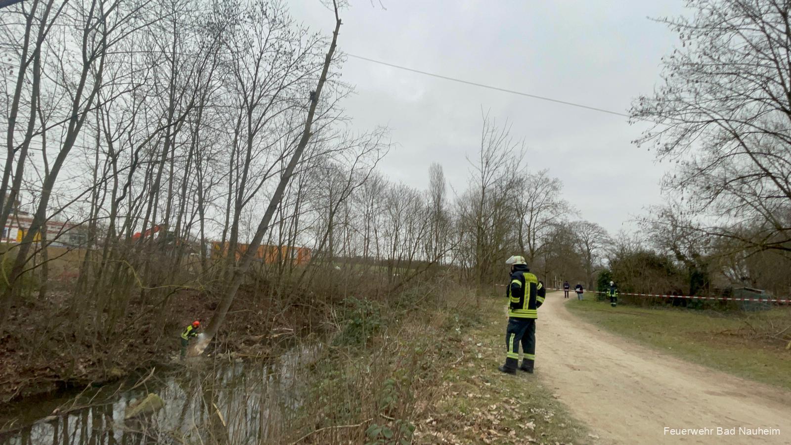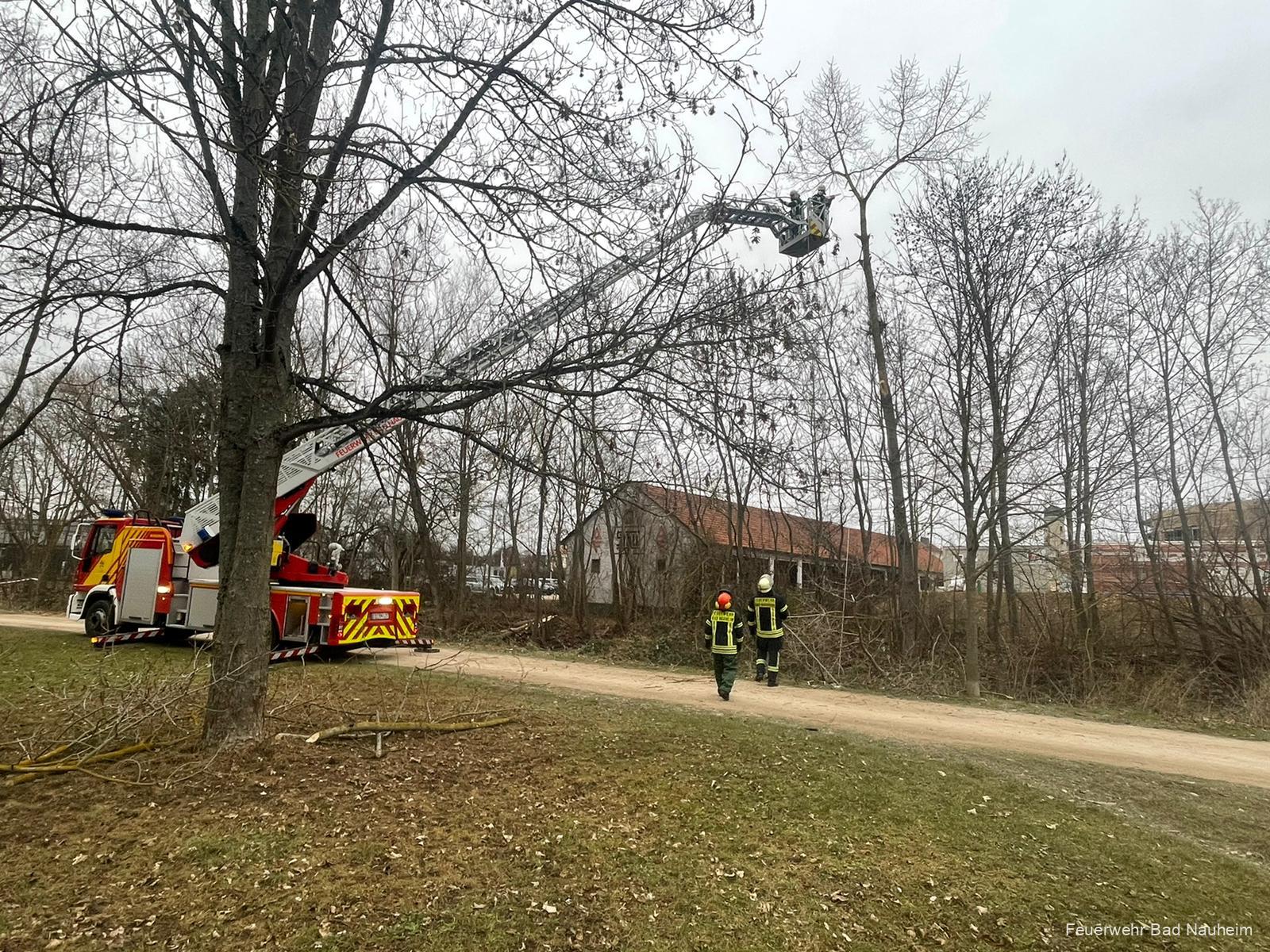 Am Samstagmittag wurden die freiwilligen Kräfte der Kernstadt zu einer Hilfeleistung an die Usa-Promenade zwischen Schwalheimer Straße und Usa-Wellenbad gerufen. Grund war ein durch einen Biber beschädigter Baum, der drohte auf den parallel verlaufenden Fuß- und Radweg zu fallen.