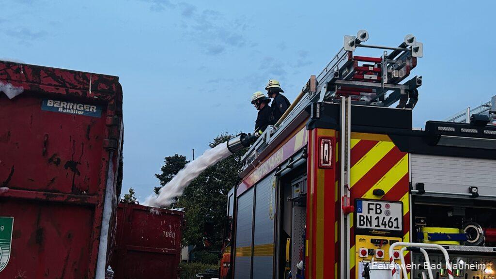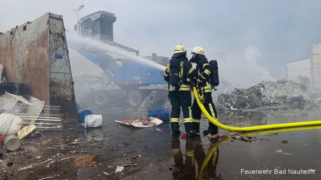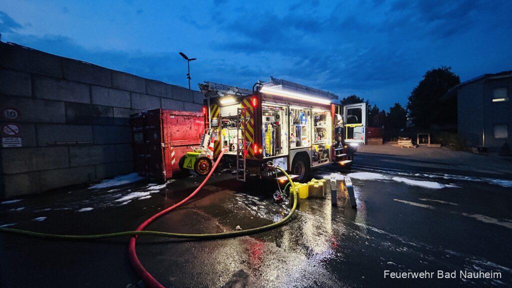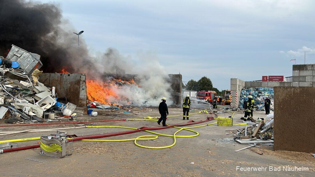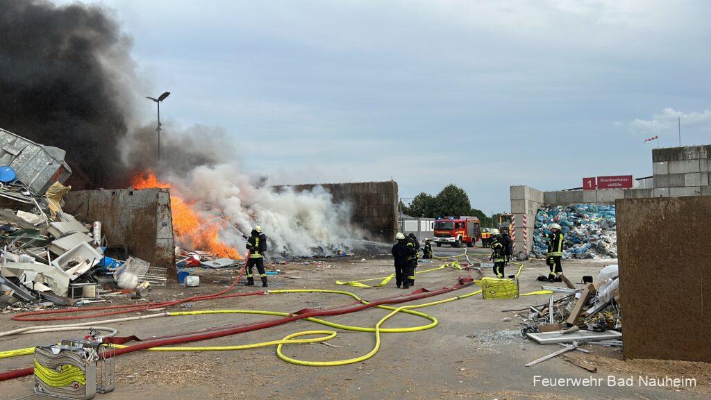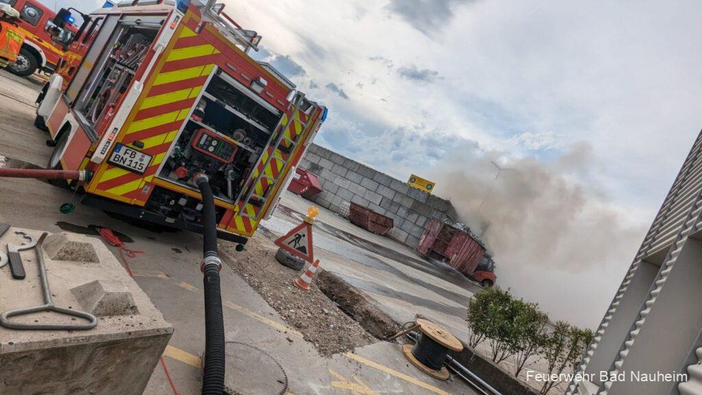 Um 18:26 Uhr wurden die Abteilungen Kernstadt und Steinfurth am gestrigen Abend zu einem Feuer auf dem Hof eines Abfallwirtschaftsunternehmens in das Industriegebiet „in der Hub“ alarmiert. Die Rauchentwicklung war schon von weitem wahrnehmbar und wies den anrückenden Einsatzkräften den Weg.