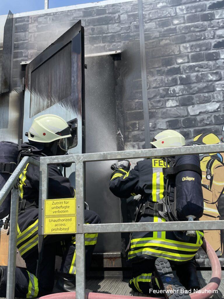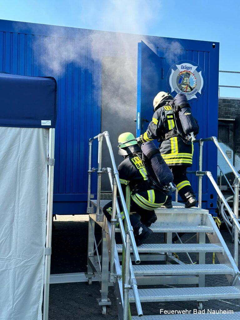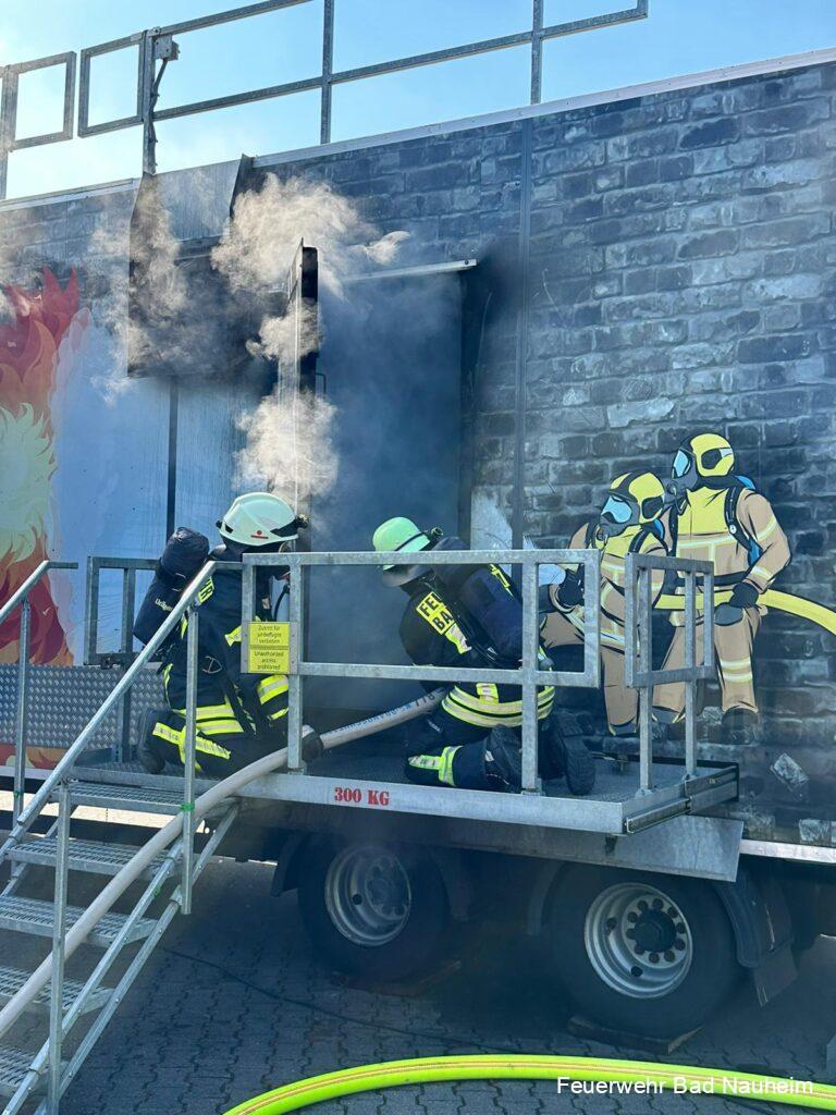 Im Jahr 2014 – also vor neun Jahren – war zuletzt die mobile Brandsimulationsanlage „Fire Dragon“ der Fa. Dräger durch die hessischen Landkreise und kreisfreien Städte unterwegs. U.a. durch Corona hat es daher etwas gedauert, bis den Atemschutzgeräteträgern wieder heimatnah die Möglichkeit zur Heißausbildung angeboten werden konnte.