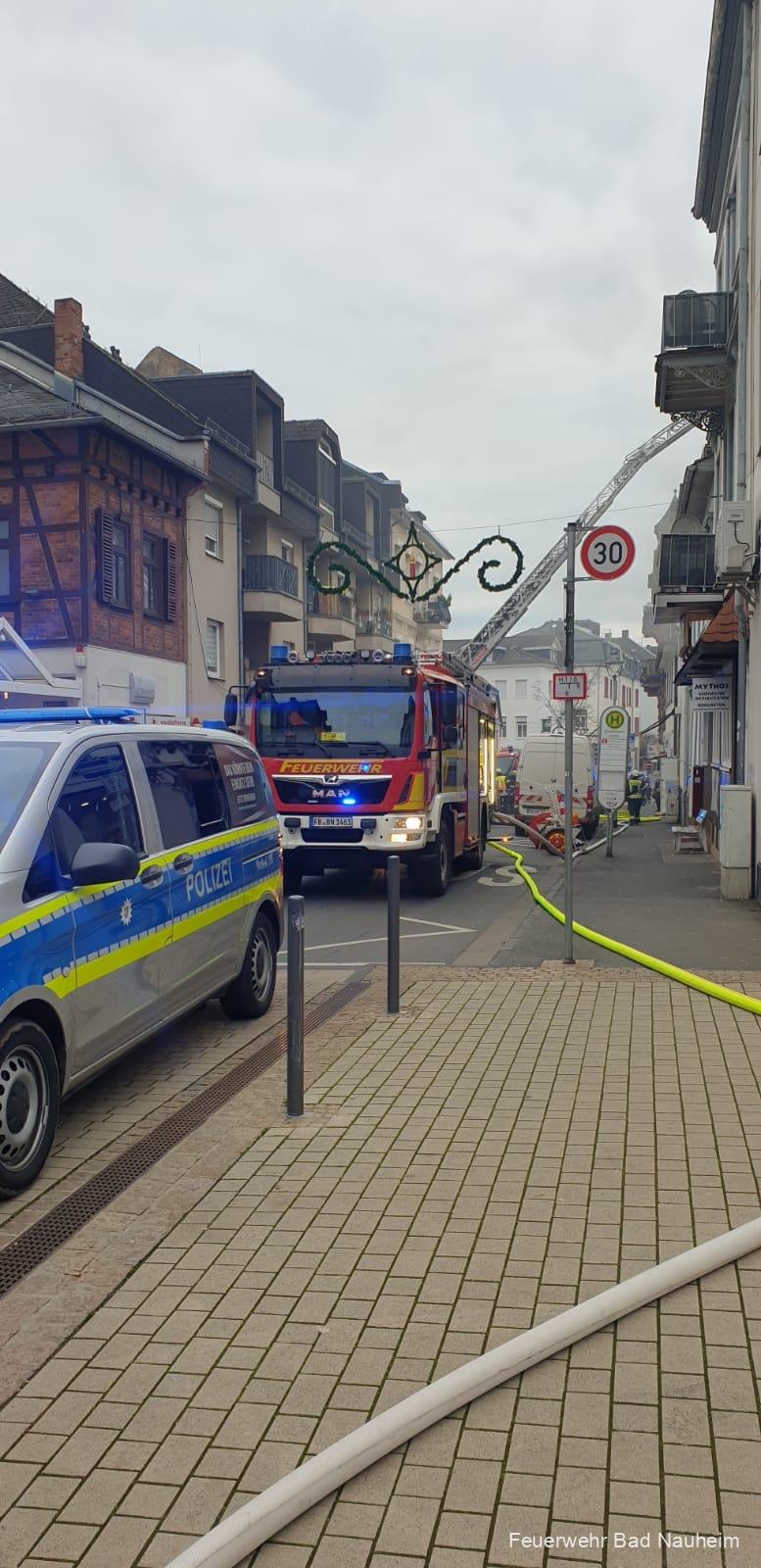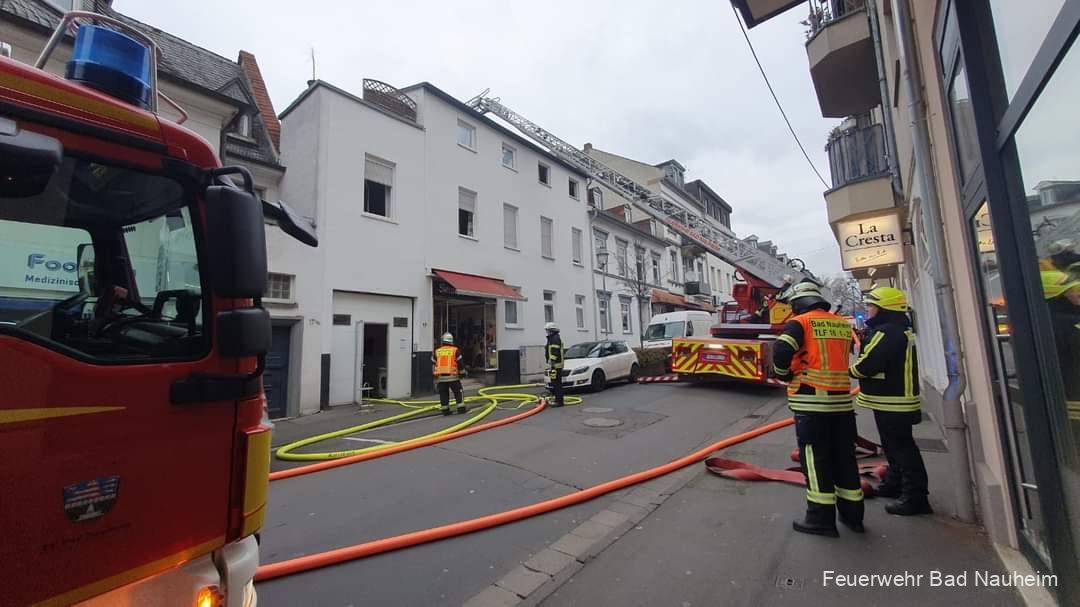 Am Dienstagnachmittag wurde die Feuerwehr Bad Nauheim zu einem Dachstuhlbrand in die Karlstraße gerufen. Die hauptamtlichen und ehrenamtlichen Kräfte rückten mit der Drehleiter, drei Löschfahrzeugen und dem Einsatzleitwagen aus, zusätzlich machten sich auch ein Rettungswagen und die Polizei auf den Weg.