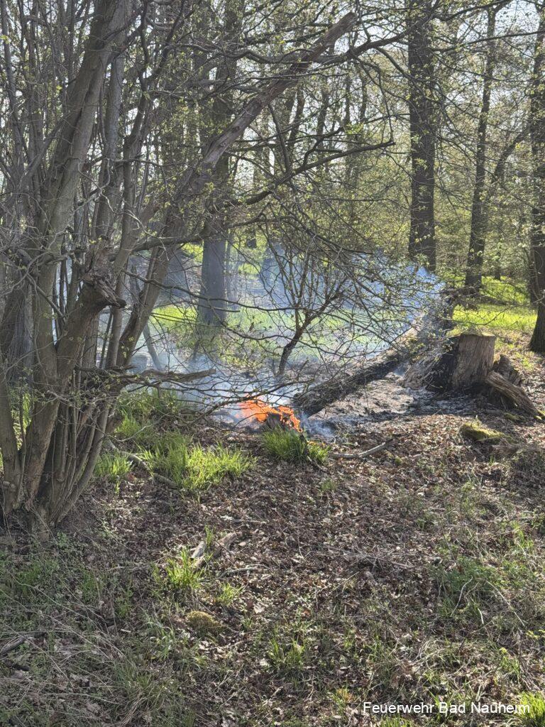 Am Nachmittag des Ostermontag wurde die Abteilung Steinfurth der Freiwilligen Feuerwehr Bad Nauheim aufgrund einer Rauchentwicklung in die Gemarkung „Am Eichberg“ alarmiert. Spaziergänger hatten Rauch und Feuerschein entdeckt und der Leitstelle Wetterau gemeldet.