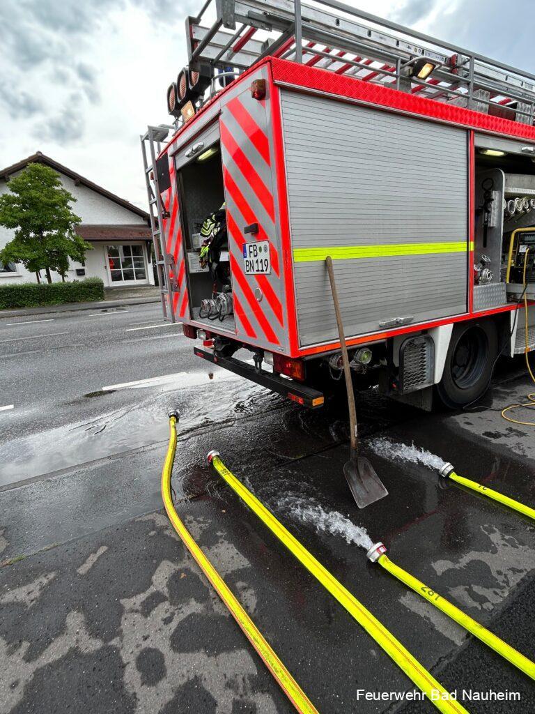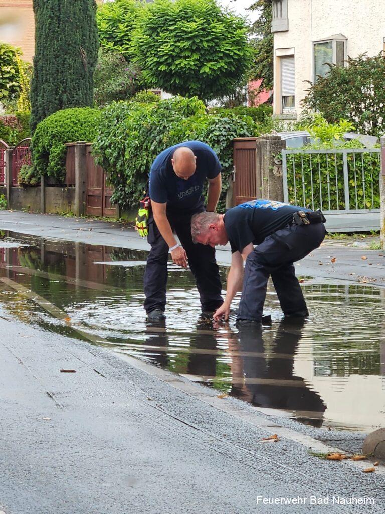Nach einem kurzen aber heftigen Regenschauer wurde die Abteilung Nieder-Mörlen zu einer unter Wasser stehenden Tiefgarage alarmiert. Diese stand auf etwa 200 Quadratmetern 5 Zentimeter unter Wasser. Mittels Tauchpumpe und Industriesaugern, die von zwei Kameraden aus der Kernstadt gebracht wurden, wurde die Garage leergepumpt. Auf dem Rückweg säuberten die Kameraden aus Bad Nauheim noch mehrere Abflüsse in der Steinfurther Straße, damit das dort stehende Wasser ablaufen konnte.