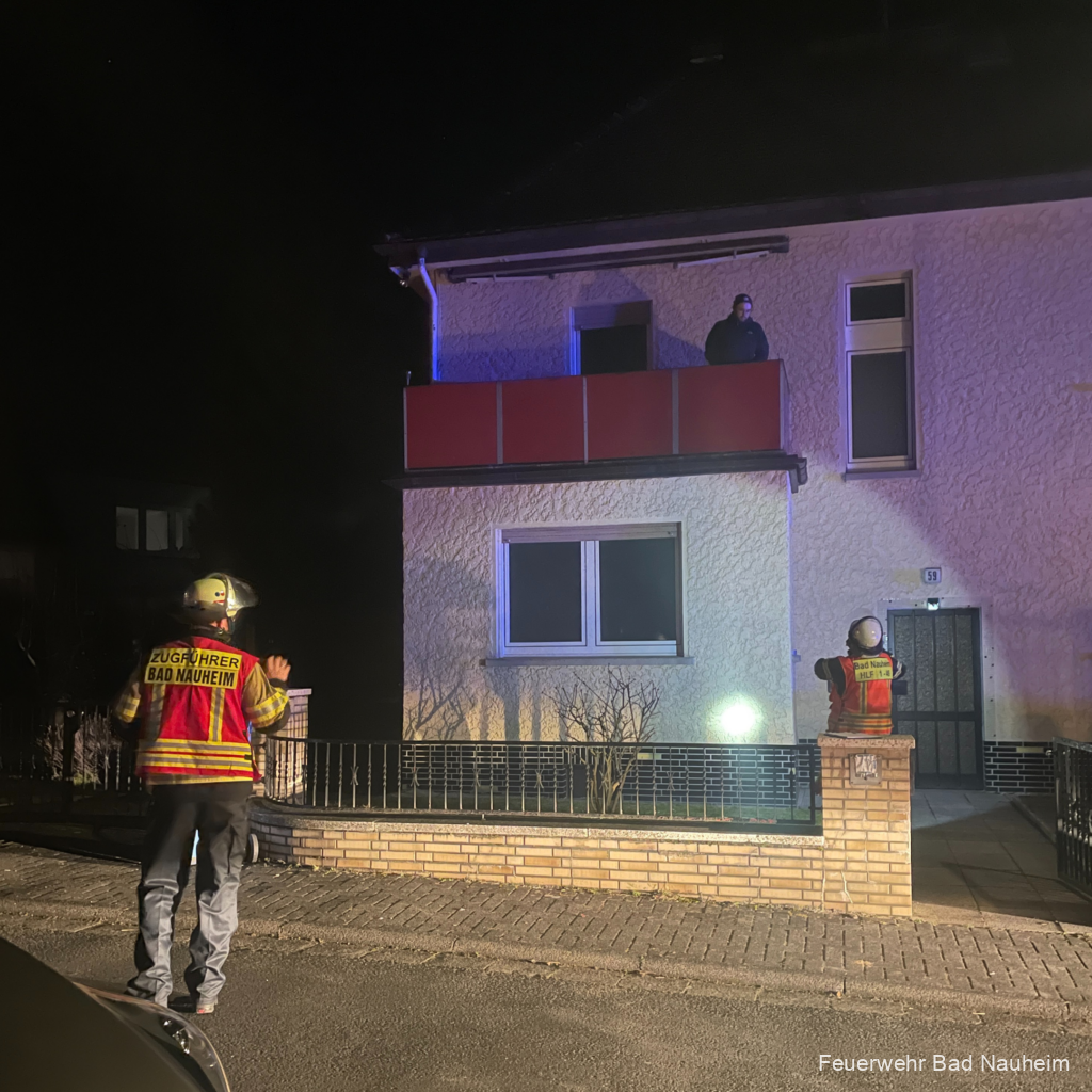 25 Einsatzkräfte rückten um 20 Uhr mit dem Einsatzleitwagen, zwei Löschfahrzeugen und einem Mannschaftstransportwagen vom Feuerwehrstützpunkt in Richtung Schwalheim aus. Der Einsatzauftrag lautete „Brand in Wohngebäude, mehrere Personen vermisst“. Vor Ort stellte sich die Übungslage wie folgt dar: Aus einem Einfamilienhaus drangen die schrillen Alarmtöne von Rauchmeldern, auf dem Balkon machte eine Person auf sich aufmerksam. Diese teilte den Kräften mit, dass es im Haus brenne und sich noch drei Familienmitglieder darin aufhalten würden. Wo, war nicht bekannt. Umgehend begann der Zugführer die Erkundung, gleichzeitig wurde durch die Fahrzeugführer ein Eindringen zur Personensuche durch die Haustür sowie die Rettung der Person vom Balkon mittels Steckleiter an die Mannschaft befohlen.