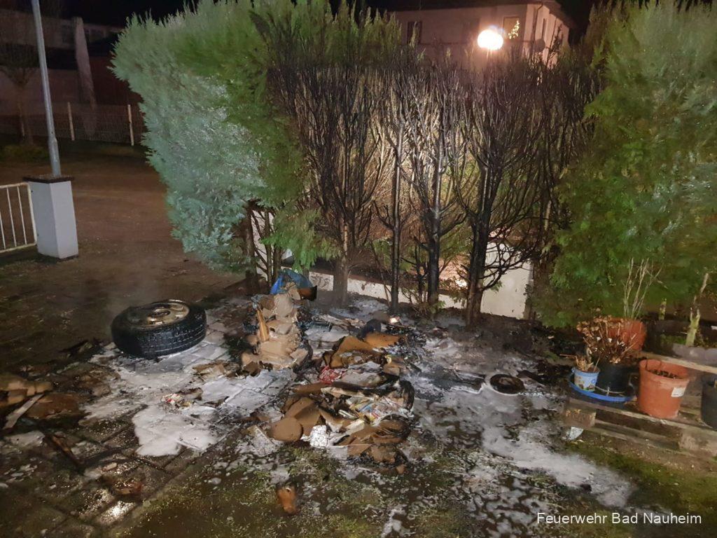 Den ersten Einsatz des Jahres 2022 der Freiwilligen Feuerwehr Bad Nauheim bescherte der Abteilung Nieder-Mörlen ein Mülltonnenbrand in der Straße „Am Haingraben“. Um 00:15 Uhr in der Nacht vom 01. auf den 02. Januar wurden die Abteilungen Nieder-Mörlen und Kernstadt zu einem Kleinbrand alarmiert. Vor Ort brannten mehrere Mülltonnen sowie etwa 2 Meter einer Hecke auf einem Privatgrundstück. Die Mannschaft des zuerst eintreffenden Tanklöschfahrzeugs aus Nieder-Mörlen hatte das Feuer zügig im Griff, weitere Kräfte wurden nicht benötigt. Die Einsatzstelle konnte nach etwa 30 Minuten wieder verlassen werden.