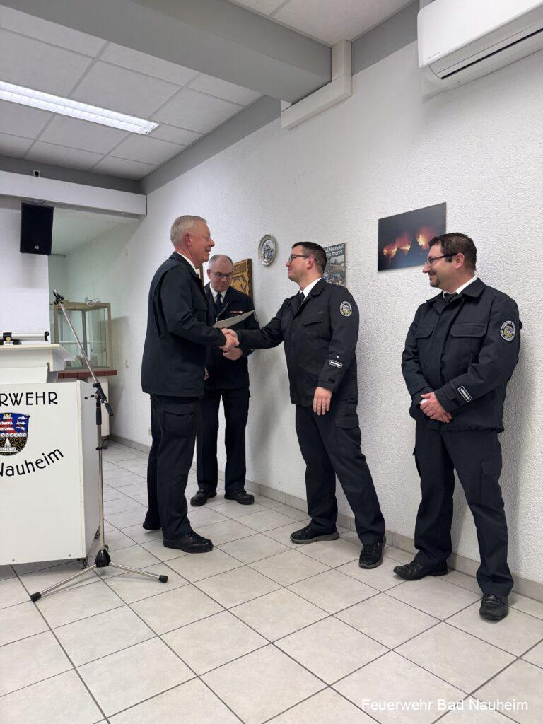 Weiter berichtete er über die Vervollständigung der leichten Einsatzkleidung, die mit der Bestellung der zugehörigen Hosen im vergangenen Jahr abgeschlossen werden konnte. Des Weiteren erhielt die Stadt Bad Nauheim einen Zuwendungsbescheid des Landes i.H.v. 132.000 € durch Staatsminister Roman Poseck für die Beschaffung eines neuen Rüstwagens.