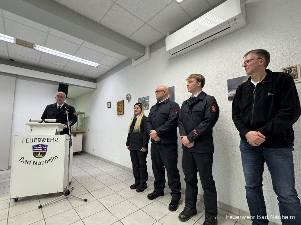 Am Freitag, den 30.01.2026, fand die gemeinsame Jahreshauptversammlung aller Abteilungen der Freiwilligen Feuerwehr Bad Nauheim statt. Stellvertretender Stadtbrandinspektor Dr. Jens Christiansen eröffnete die Sitzung und begrüßte die Einsatzkräfte und Gäste, darunter Bürgermeister und Brandschutzdezernent Klaus Kreß, Magistratsmitglied Klaus Dietz, Kreisbrandinspektor Lars Henrich, Ehrenbrandschutzdezernent Peter Baumann, Ehrenstadtbrandinspektor Joachim Krämer und Ehrenstadtjugendwart Gerald Dallwitz.