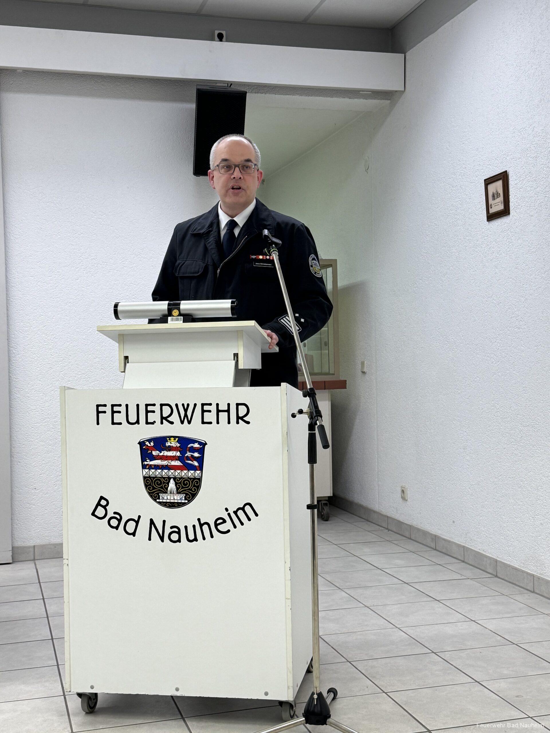 Bürgermeister und Brandschutzdezernent Klaus Kreß begrüßte die Anwesenden und ging auf die finanzielle Lage der Stadt in Bezug auf den geplanten Neubau des Gerätehauses in Nieder-Mörlen ein. Zudem sprach er allen Einsatzkräften seinen Dank für das großartige Engagement aus und versicherte, dass ganz Bad Nauheim stolz auf seine Freiwillige Feuerwehr ist.