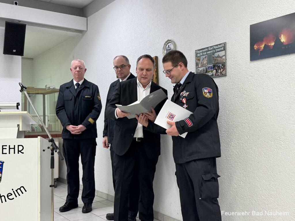 Bürgermeister und Brandschutzdezernent Klaus Kreß begrüßte die Anwesenden und ging auf die finanzielle Lage der Stadt in Bezug auf den geplanten Neubau des Gerätehauses in Nieder-Mörlen ein. Zudem sprach er allen Einsatzkräften seinen Dank für das großartige Engagement aus und versicherte, dass ganz Bad Nauheim stolz auf seine Freiwillige Feuerwehr ist.