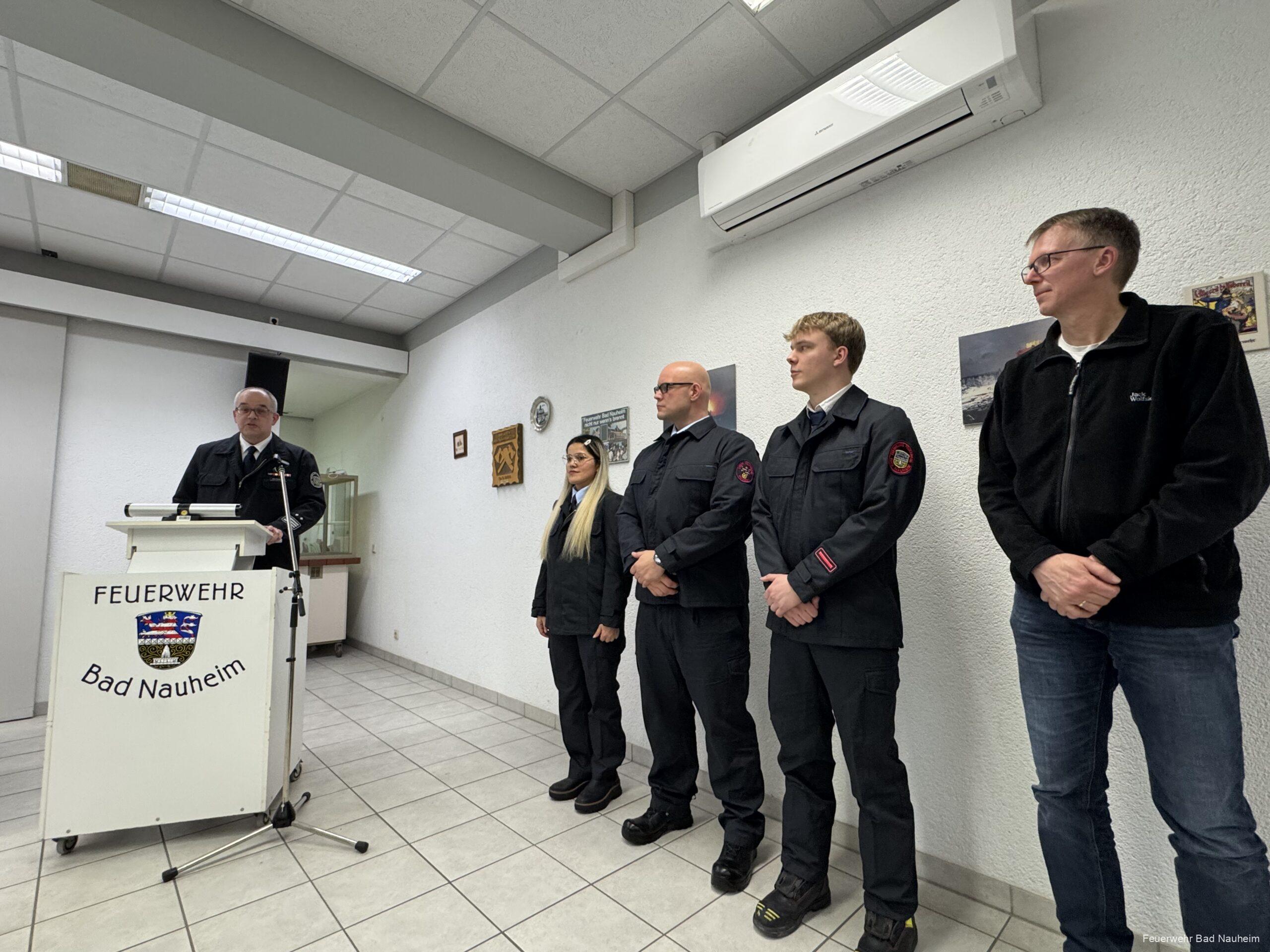 Am Freitag, den 30.01.2026, fand die gemeinsame Jahreshauptversammlung aller Abteilungen der Freiwilligen Feuerwehr Bad Nauheim statt. Stellvertretender Stadtbrandinspektor Dr. Jens Christiansen eröffnete die Sitzung und begrüßte die Einsatzkräfte und Gäste, darunter Bürgermeister und Brandschutzdezernent Klaus Kreß, Magistratsmitglied Klaus Dietz, Kreisbrandinspektor Lars Henrich, Ehrenbrandschutzdezernent Peter Baumann, Ehrenstadtbrandinspektor Joachim Krämer und Ehrenstadtjugendwart Gerald Dallwitz.
