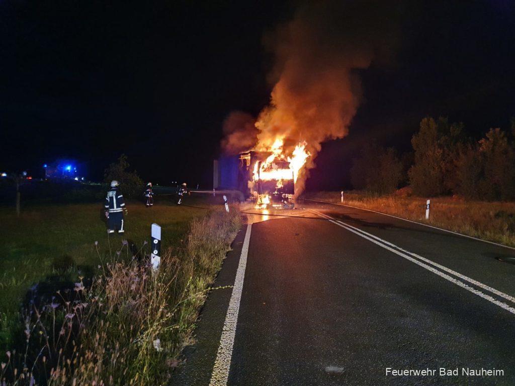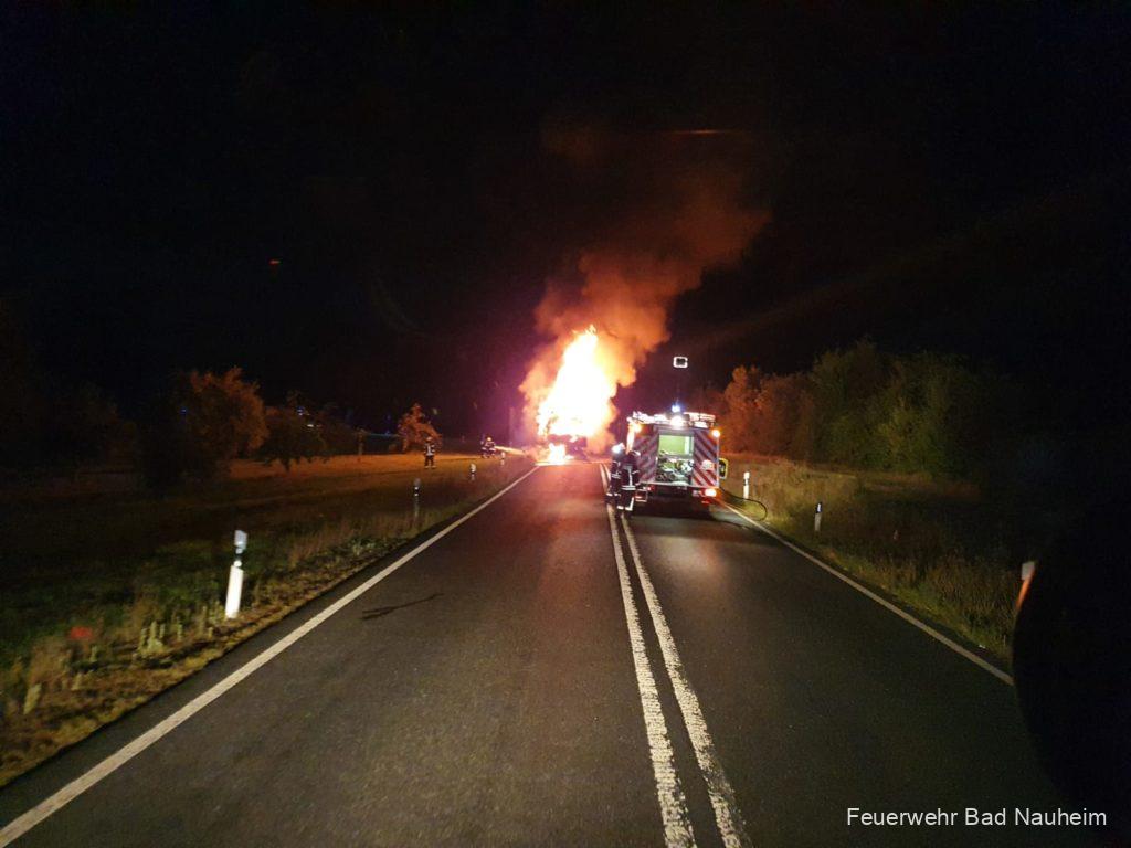 Am heutigen Mittwochabend wurden die Abteilungen Kernstadt und Nieder-Mörlen gegen 20:45 Uhr zu einem brennenden LKW auf die Abfahrt “Ober-Mörlen” der A5 gerufen.