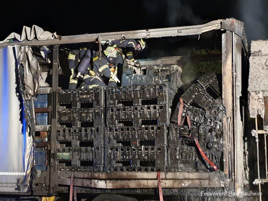 Der Feuerschein und die Rauchsäule waren weithin sichtbar, als die ersten Einsatzkräfte eintrafen. Mit mehreren Trupps unter Atemschutz wurde das Fahrerhaus abgelöscht, doch auch ein Teil der Ladung war bereits in Mitleidenschaft gezogen worden. Die teils geschmolzenen Plastikpaletten auf der Ladefläche mussten in mühsamer Handarbeit auseinandergebrochen und abgeladen werden, ehe auch die letzten Glutnester bekämpft werden konnten.