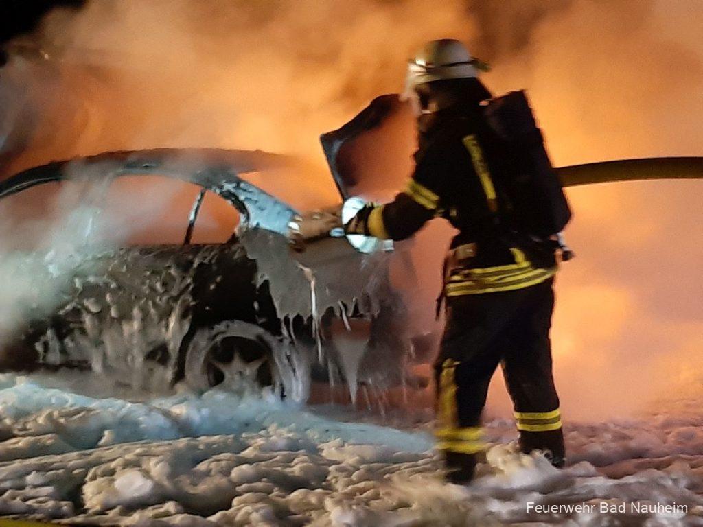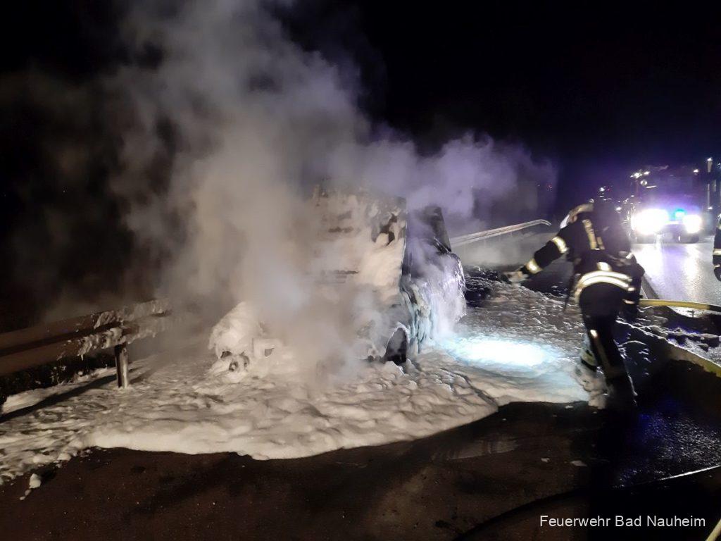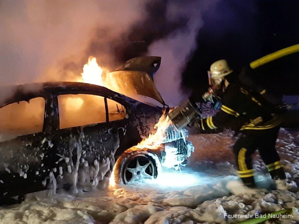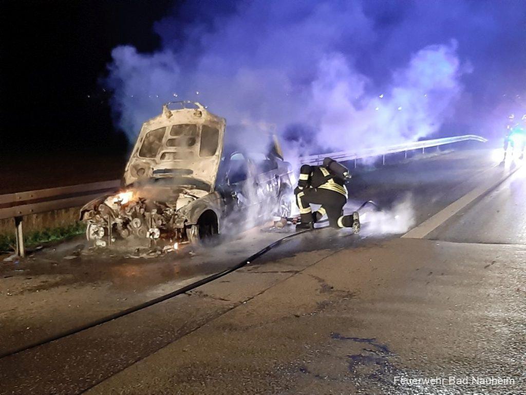Gegen 04:30 Uhr wurden die ehrenamtlichen Kräfte der Feuerwehr Bad Nauheim Kernstadt aus dem Schlaf gerissen: Ein PKW brannte auf der A5 in Fahrtrichtung Frankfurt, kurz nach der Anschlussstelle Bad Nauheim.